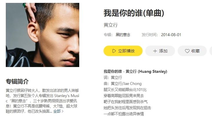 以上就是黄立行《我是你的谁》歌曲在线试听地址分享的全部内容了,感兴趣的小伙伴可以关注本站,小编后续更新更多精彩内容不要错过了。