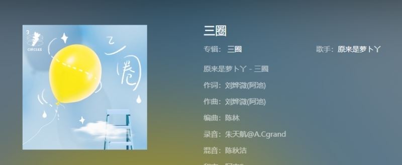 这首歌叫做《三圈》,是歌手原来是萝卜丫演唱的一首歌曲,由刘烨溦(阿池)作词作曲,陈林编曲。