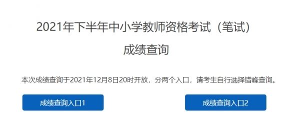 2021下半年教资笔试成绩查询入口提前开放