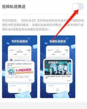 最后,点击【投稿私信推送】,最后点击右侧开关开启即可。