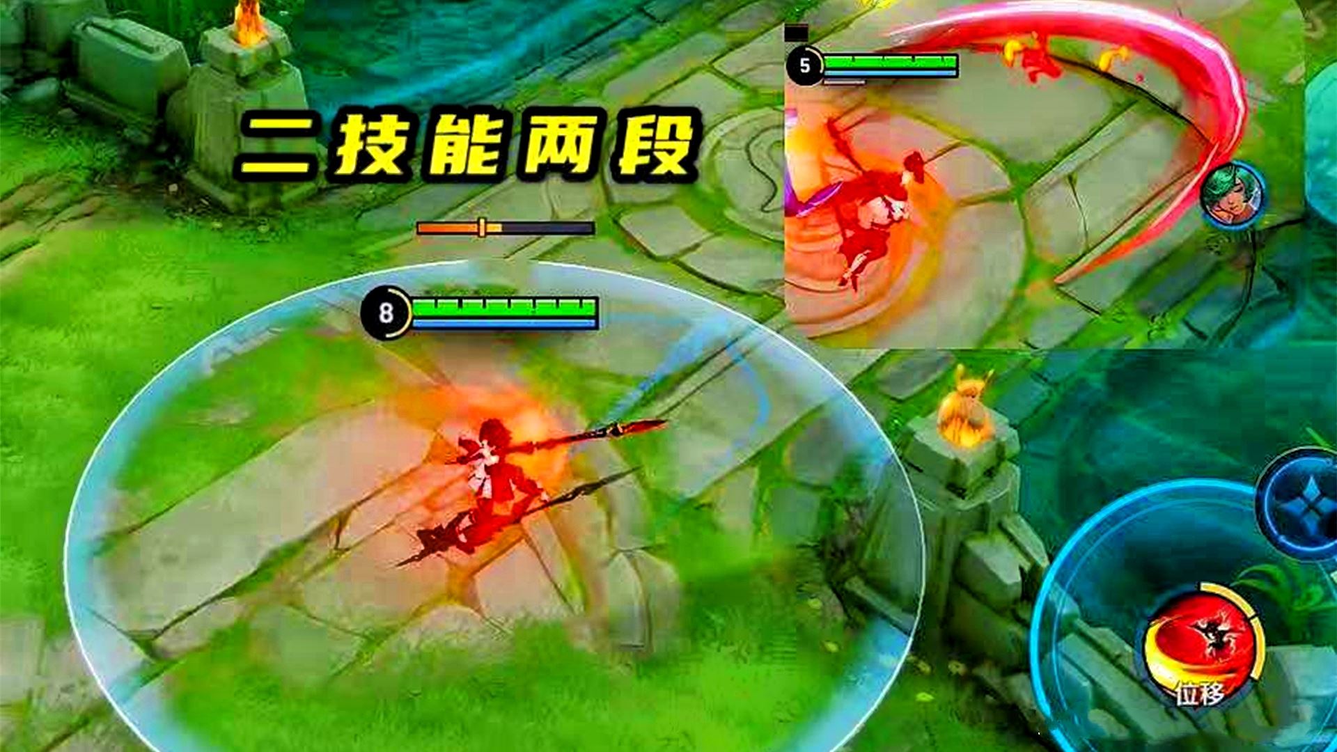 云樱一技能为破云断岳,当其跃起之后,往下批,从而打出两段攻击,激发出0.5秒钟的击飞效果。云樱二技能为夜杀空城,带有突袭位移,还拥有1.5秒钟的减速、控制效果。云樱三技能为驭火兴风,拥有五段技能,这一技能中间带有不同的枪意效果的普通攻击,从而打出较高伤害,技能带有免伤和突进效果。