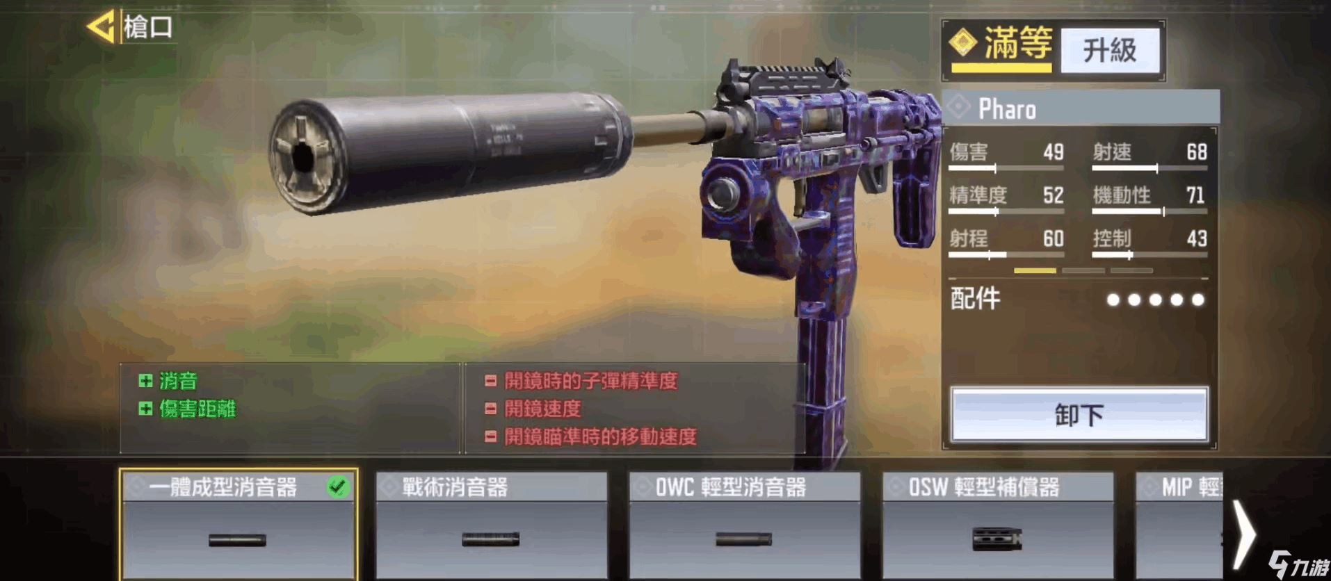 Pharo本身的枪械数值还是很不错的,我们可以看到作为一把冲锋枪它的伤害有49点之高直追常见的突击步枪,而它的射程和机动性也非常的不错,既可以远点也可以突脸秒杀敌人后再转点。不过相对的它的精准度和控制略差,需要玩家不断使用来逐渐掌握。因此在配装方面我们需要补充其精准度和控制的劣势,并添加一些功能性配件强化其优势。