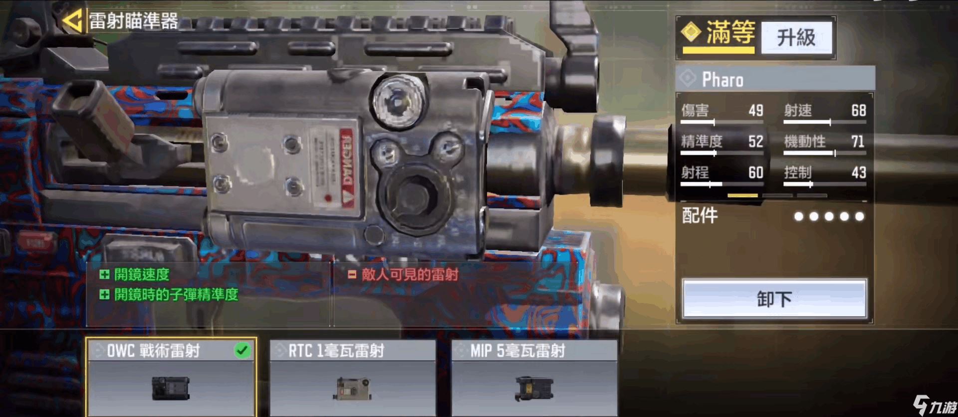 DWC战术镭射可以说是所有冲锋枪的标配配件了,其对开镜速度的强化能够使得玩家在与敌人的突发交火中占尽先机,而加强了开镜时的子弹精准度也间接地强化了Pharo的精准度与控制,降低了其上手的门槛。