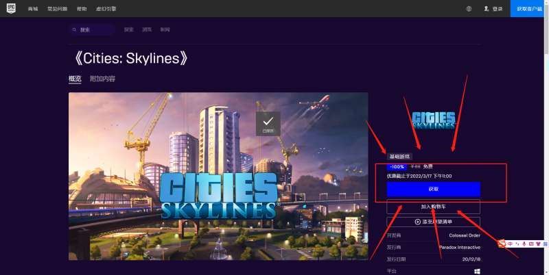 1、首先我们需要登录自己的Epic商城账号,接着打开上方的领取链接地址进入到游戏的主页面;