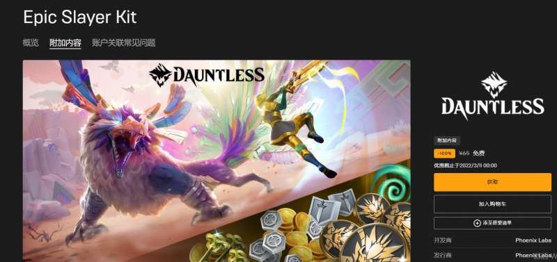 1、领取地址:https://www.epicgames.com/store/zh-CN/p/dauntless--epic-slayer-kit
