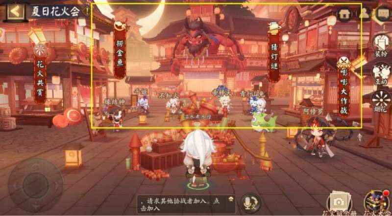 花火留念册:与场地内式神相互留影合照,可以解锁烟花动作,同样无实际奖励,可无视。