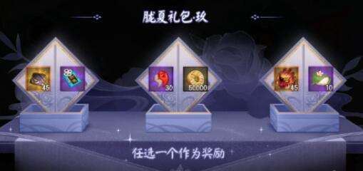 限定动态头像框X2、蓝票X3、庭院主题、200金蛇皮、200逢魔皮、黑蛋(氪金三选一礼盒奖励如下,并无体力奖励)。