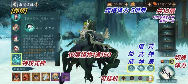 4、借式神:点击借式神快捷键,可借3个式神,上场1个,无限使用。