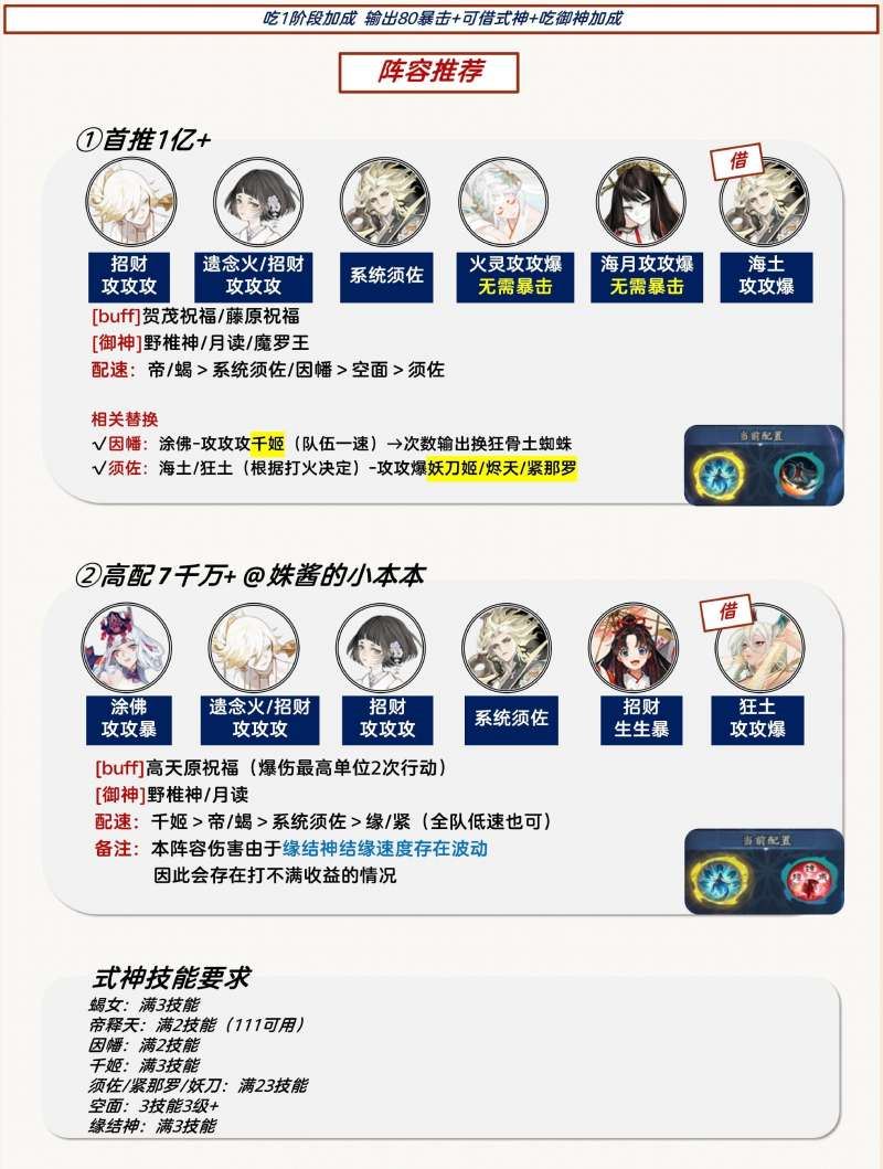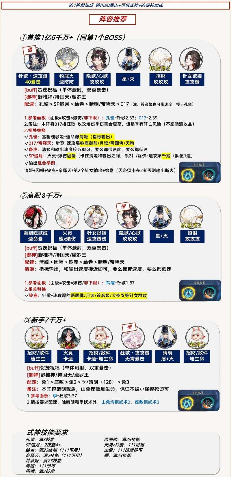 - 吃1阶段加成,输出80暴,可借式神,吃御神加成。