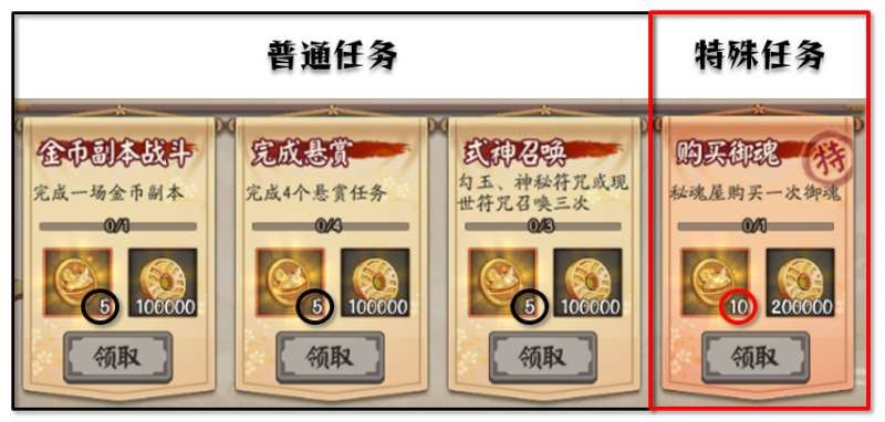 5、不算御祝,活动期间完成除召唤外的其他任务可累计获取560W金币