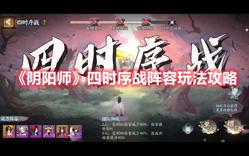 《阴阳师》四时序战活动是游戏中目前的一个挑战活动,玩家在这次的活动中会有很多的挑战需要完成,可能有玩家还不清楚这次的活动要怎么玩,阵容怎么选,下面小编就给大家整理了具体的阵容玩法攻略,一起来看看吧!