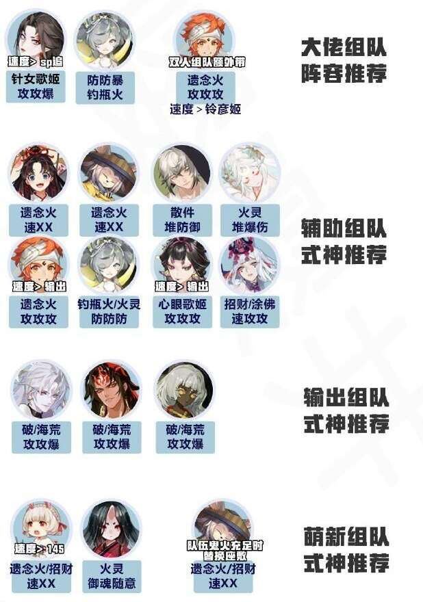 最多3人组队,3人组队每人携带2位式神,2人每人带3位式神。组队配队保证有鬼火+输出即可,野队推荐带双鬼火。