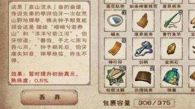 任务结束,获得曲谱高山流水-抄本[增加初始内元](之前丢弃琴谱「醉渔唱晚」的,完成任务后会重新补发一本!)