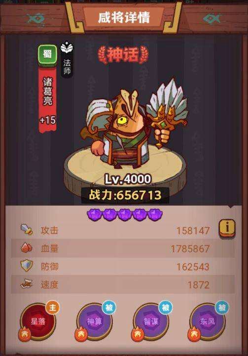 诸葛亮:诸葛亮是蜀国神话品质的咸将,位置也是法师,被动技能神算可以对敌方造成多个负面效果。