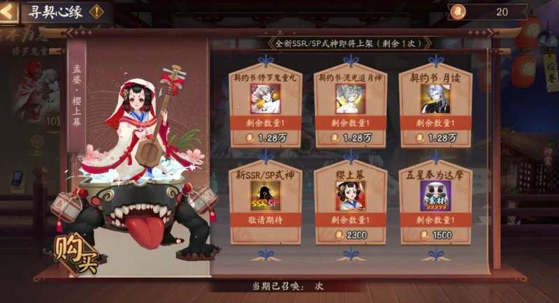 ※召唤期内使用神秘的符咒、勾玉、现世符咒进行召唤时,若连续59次未召唤到SP/SSR式神,下一次必定出现SP/SSR式神(若在达到次数前召唤出SP/SSR式神,则重新开始计算)。