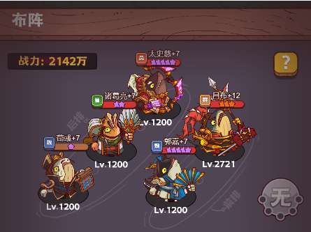站位:吕布郭嘉前排,郭嘉站2号位可打出受击冰冻效果。诸葛亮太史慈荀彧后排输出、辅助即可。