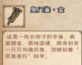烟雨江湖鬼门鉴金有什么作用?该怎样获得?相信还有非常多的玩家还不知道,这里小编就为大家带来鬼门鉴金作用及获取方法介绍,希望能够帮助大家解决对应的问题,具体内容已经分享在下面了,想要了解的朋友快来一起看看吧!