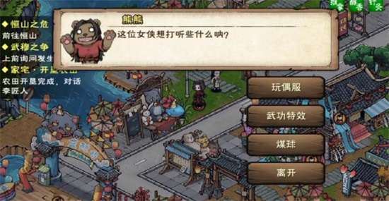 2、接着来到(16,22)熊熊处打听谁来过,有幼儿园(19.4),熊猫大侠(31.17)和奥利(26.8)来过。
