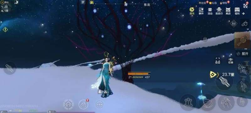 当玩家从高空落到云层上时,仍可像之前一样点击滑翔键进入云上滑行,开启“滑云”模式,cos一把滑雪运动员的矫健身姿,云上移动时还能看到滑雪轨迹效果以及冰雪特效哦!