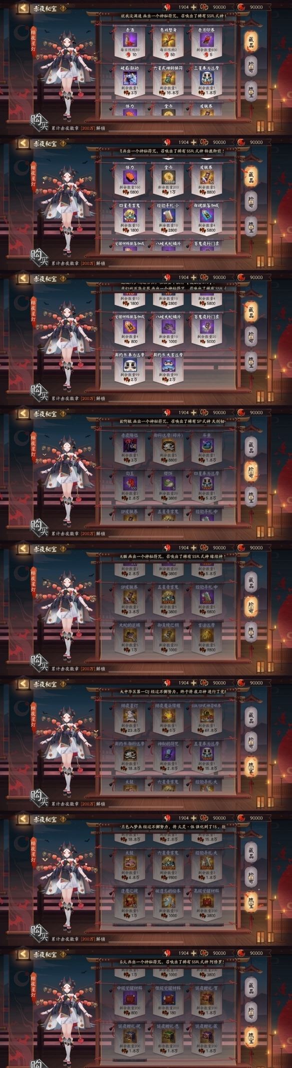 *累计一定数量的'夜之印'将可以兑换SR阶式神吸血姬皮肤'绯夜星灯'、限定头像框'绯夜魔'、契约书·御行达摩、随机SSR/SP式神召唤券等奖励。