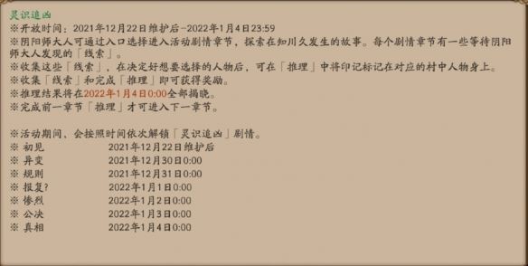*阴阳师大人可通过获取'线索'与完成'推理'来获取灵识追凶的奖励。