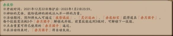 *消耗'赤月团子'可解锁与升级赤夜祭技能,大人最多可携带4个赤夜祭技能进入战斗。