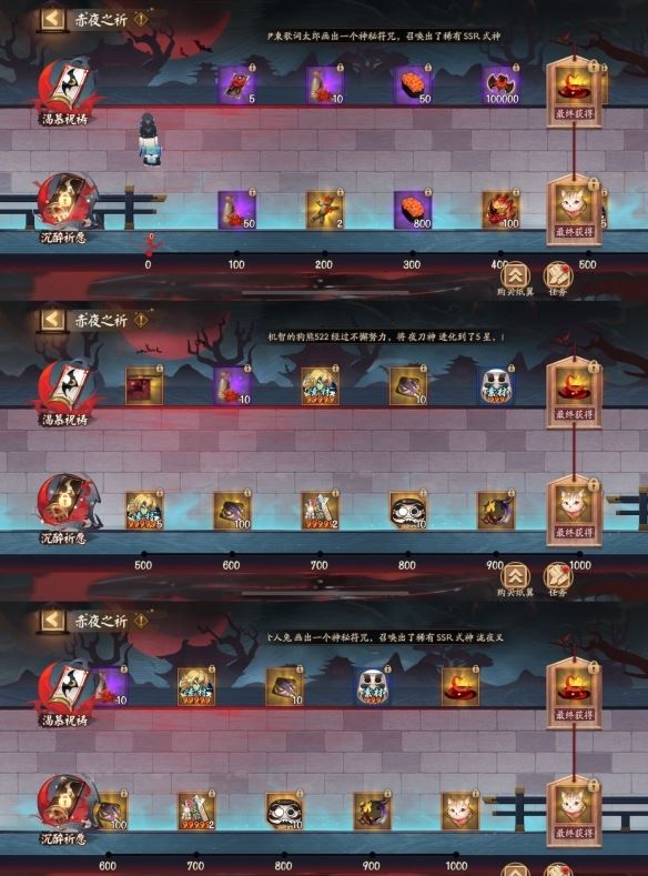 *根据不同的获胜场数可获得不同数量的夜之印、随机御魂、金币等奖励。