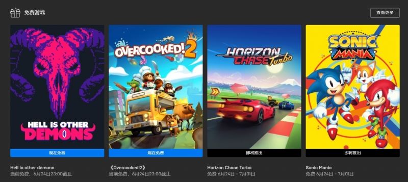 Epic游戏商城每周免费游戏领取已更新,玩家现在已经可以免费领取《胡闹厨房2》和《地狱既恶魔》,领取时间为6月17日23点至6月24日23点,下周免费游戏为《追逐地平线》和《索尼克:狂欢》。