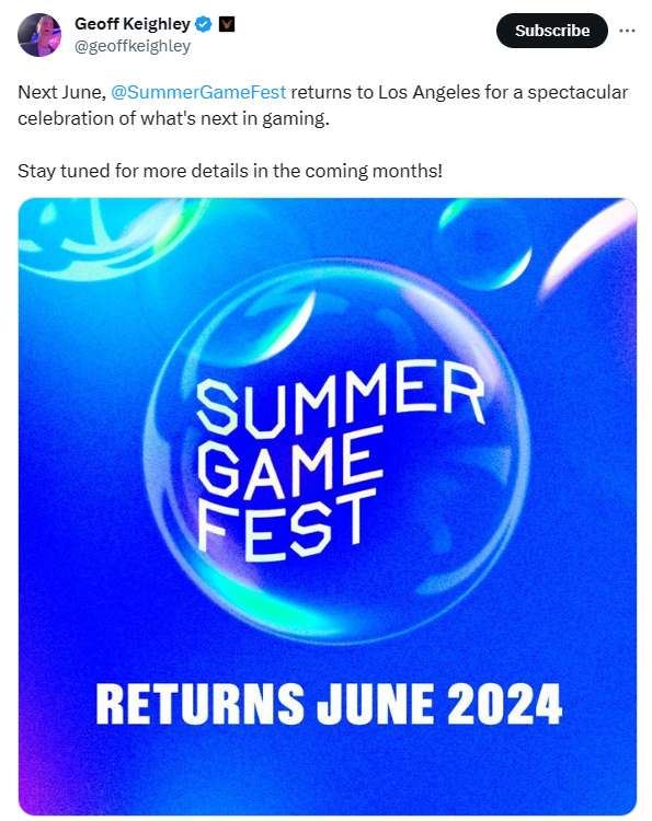 本篇将为大家带来2024年夏日游戏节官宣6月于洛杉矶举办的内容,夏日游戏节创始人兼主持人Geoff Keighley宣布,2024年的夏日游戏节将在6月于美国洛杉矶举行,未来几个月还将公布更多活动细节。该消息是在E3活动运营商ReedPopReedPop 和 主办方ESA 宣布分道扬镳之后公布的,看来Geoff Keighley非常的自信。感兴趣的小伙伴们一起来看看吧,希望能够帮助到大家。