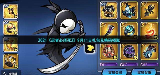 《忍者必须死3》这款手游除了剧情模式还有竞技场,不仅仅是一款跑酷游戏,需要玩家搭配角色的武器,在剧情中还要战胜boss,合理的角色搭配也是需要游戏资源的,很多玩家会遇到角色培养的瓶颈,除了在游戏内可获得的游戏代币,官方不定期更新的礼包码中也可以获得,那么今日的礼包码是什么呢?下面本站的小编就给大家整理了《忍者必须死3》9月11日礼包兑换码领取,一起来看看吧。