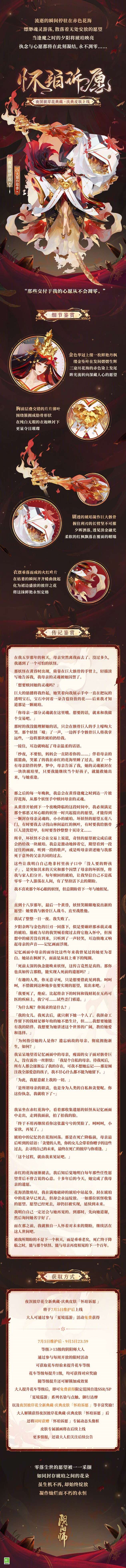 夜溟彼岸花全新典藏·庆典皮肤「怀珀诉愿 」将于7月5日维护后上线,大人可通过参与「夏境巡游」活动免费获得!