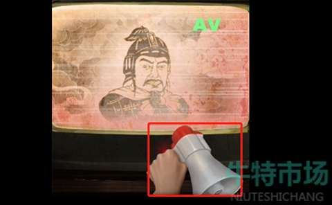 9、返回有电视的屋子,把玉佩放到机关盒子上,开启之后获取一张CD,放入电视当中,使用喇叭录制石将军的声音;