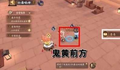 1、第一个,我们进入游戏后来到缘结神中心找到鬼黄面,可以看到面前的蓝色光圈;