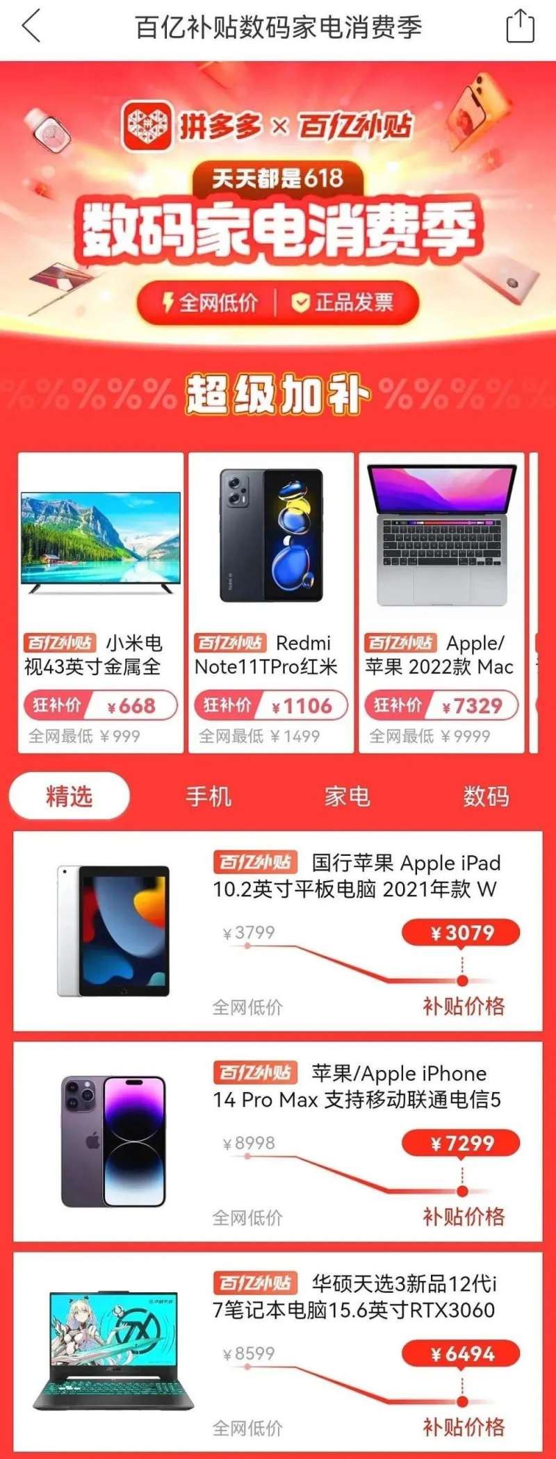 距离618大促2个月的时候,拼多多百亿补贴正式启动“数码家电消费季”,在百亿补贴的基础上再次投入10亿真金白银,对数码家电全品类进行额外补贴。