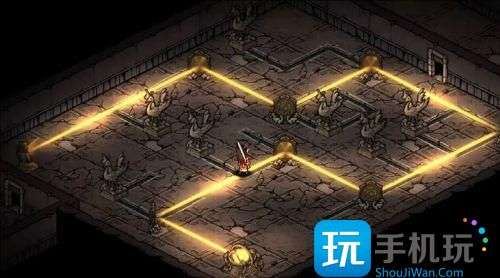 三个雕像左下下的情况进入右侧山洞,地面会出现一个入口,从该入口进入机关城