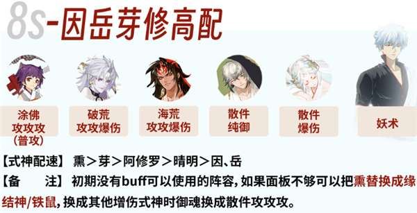 3、这次buff不强力就不分初期和后期阵容了,需要满buff的阵容图中都标注好了,后面记得更改就行,有因岳的阵容随便做,没有因岳寸步难行....