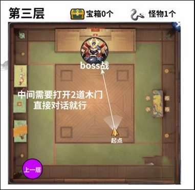 3、第三层,我们从地图上往前走,需要哦们打开2扇木门,直接挑战boos就可以通过哦。