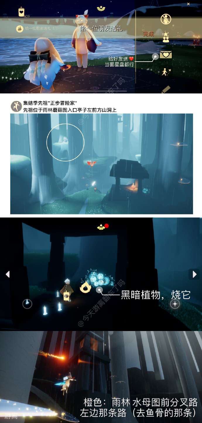 4、第四个每日任务是收集橙色光芒,雨林水母图前左边分叉路(高台小金人附近)