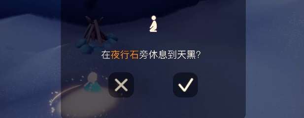 2、夜行季期间我们也可以通过向导先祖直接传送过来,这里打坐会提示我们要休息到天黑,这样我们就进入了夜晚的晨岛地图夜行石,我们就可以寻找夜行季的四个先祖了;