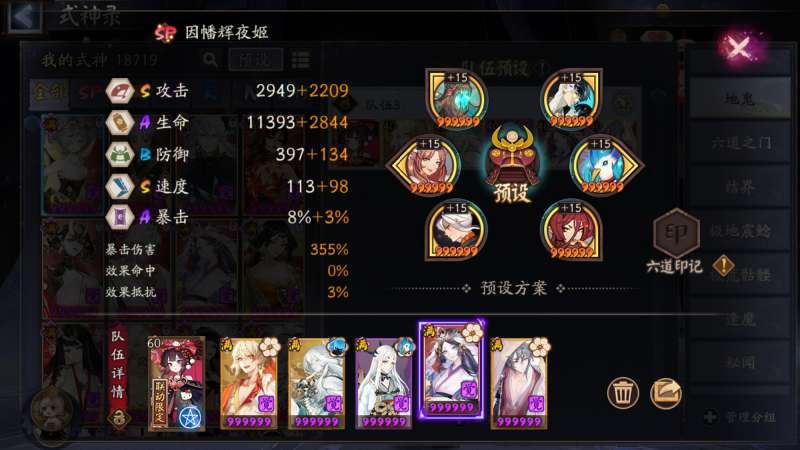 阵容选择:神乐、食灵、季、妖琴师、因幡辉夜姬、不见岳