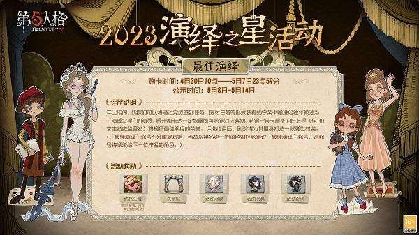 以上就是小编为各位带来的第五人格2023演绎之星上线日期的介绍。来本站,查看更多相关的资讯,玩更多好玩的游戏。