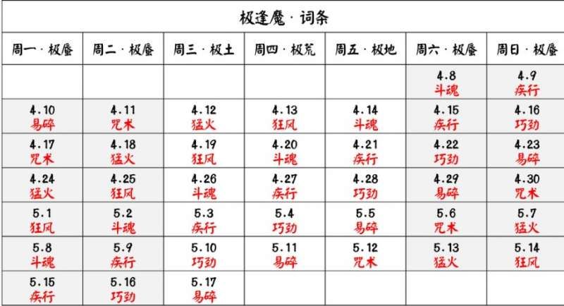 咒术、狂风、巧劲、斗魂词条: