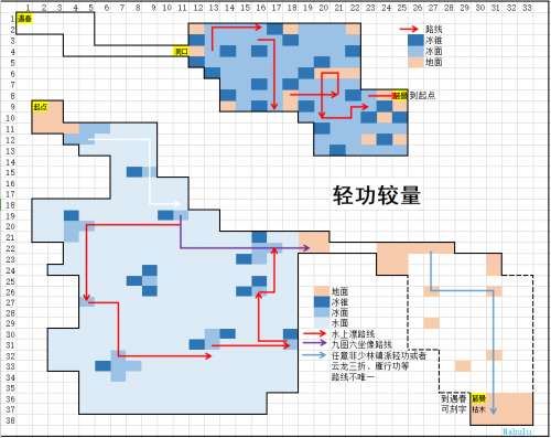 ps:(14,22)居仙亭搜索可以开视野,然后再从(16,4)向西跳到(8,4)(六重太乙镇派轻或雁行功吃轻燕丹跳过)