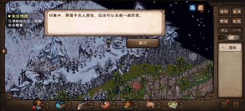 在冰夕阁(16,9)至巴图尔(16,3)的道路上走动(或者南边的湖旁),提示雪越下越大(根据上阵随从可能会有不同剧情),然后需要你找一个避雪点,再前往冰夕阁避雪