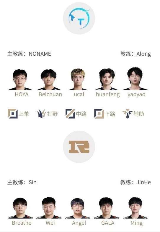 对战情况为:TT vs RNG,以下为各队比赛时间以及首发阵容名单。
