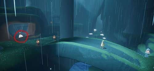 雨林的第三个场景,在躲雨的这个先祖这里,然后往右边看,如图所示。