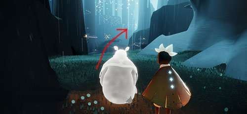 在亭子往左边看,可以看到先祖的闪光点,可以参考图中的位置。可以得到害羞先祖。