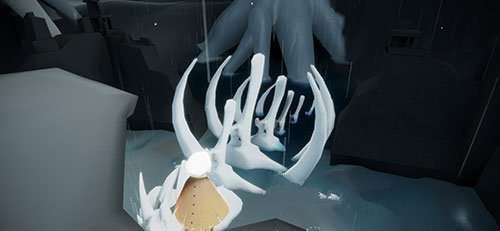 此时可以直接往上飞,然后就可以来到一个寒冷的地方,在这里可以发现一个巨大的鱼骨头,玩家直接靠近烧掉附近的污染物,就可以顺利得到鱼叫先祖了。
