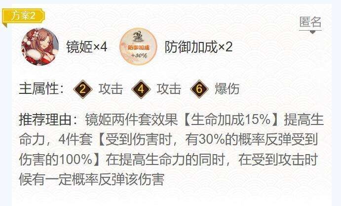 方案二:镜姬*4,防御*2