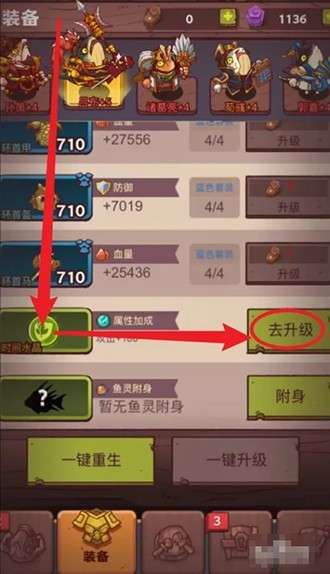 2、进入装备页面,选择任意水晶并点击“去升级”。